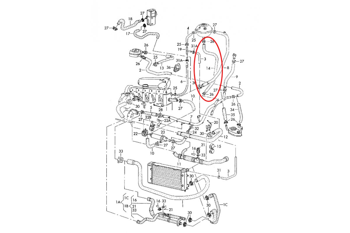 Патрубок радиатора VW Transporter T4 / Фольксваген Транспортер Т4 2.5 (бензин) 96-03.