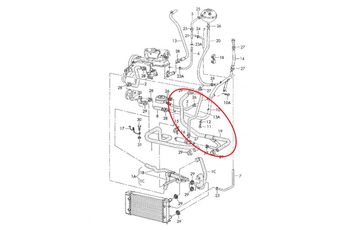 Патрубок радиатора VW Transporter T4 / Фольксваген Транспортер Т4 1.9D / 1.9TD 96-03.