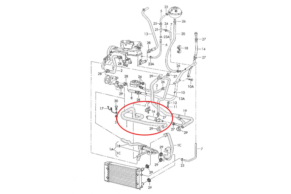 Патрубок радиатора VW Transporter T4 / Фольксваген Транспортер Т4 1.8 / 2.0 (бензин) 96-03.