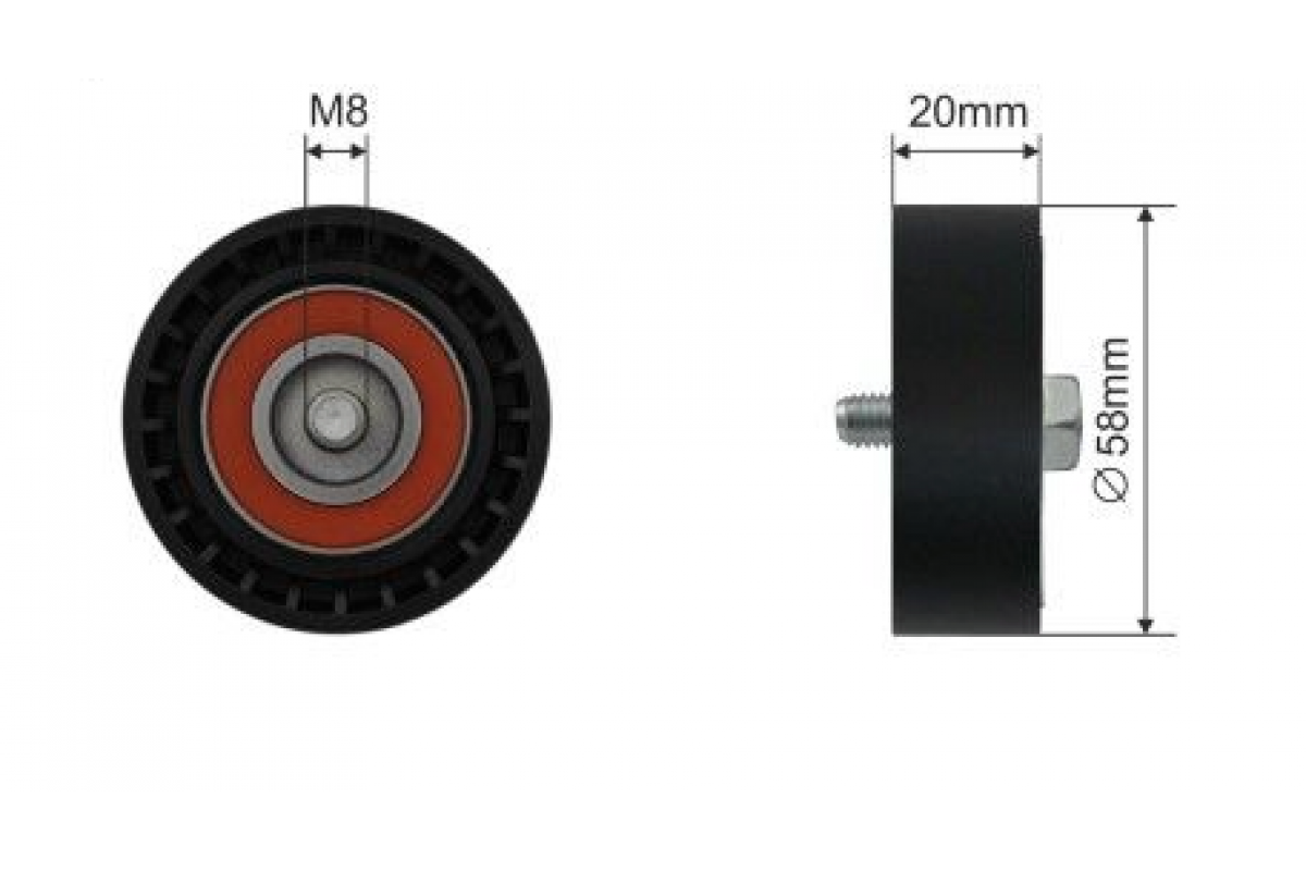 Ролик натягувача ременя генератора (58x20мм, двигун: CDGA) Volkswagen Passat B6 / Фольксваген Пассат Б6 1.4TSI 2005-2010 RNKAU037 NTY (Польща)