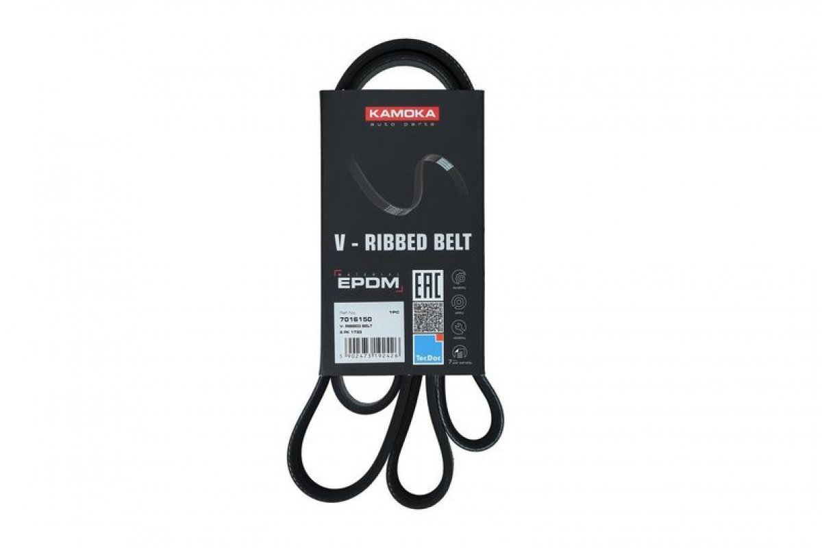 Ремінь генератора (1733мм, з кондиціонером, двигун: CAXA) Volkswagen Passat B6 / Фольксваген Пассат Б6 1.4TSI 2005-2010 7016150 KAMOKA (Польща)