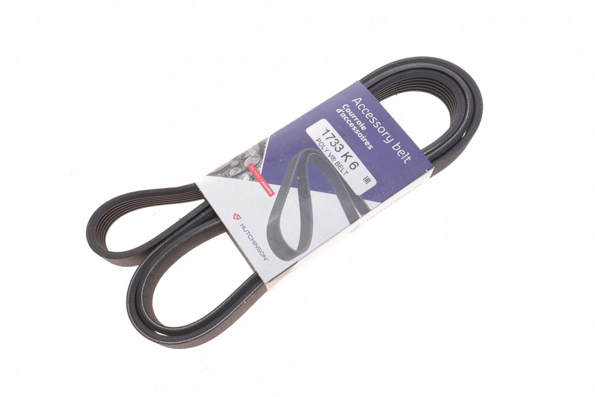 Ремінь генератора (1733мм, з кондиціонером, двигун: BLF) Volkswagen Passat B6 / Фольксваген Пассат Б6 1.6FSI 2005-2010 1733K6 HUTCHINSON (Франція)