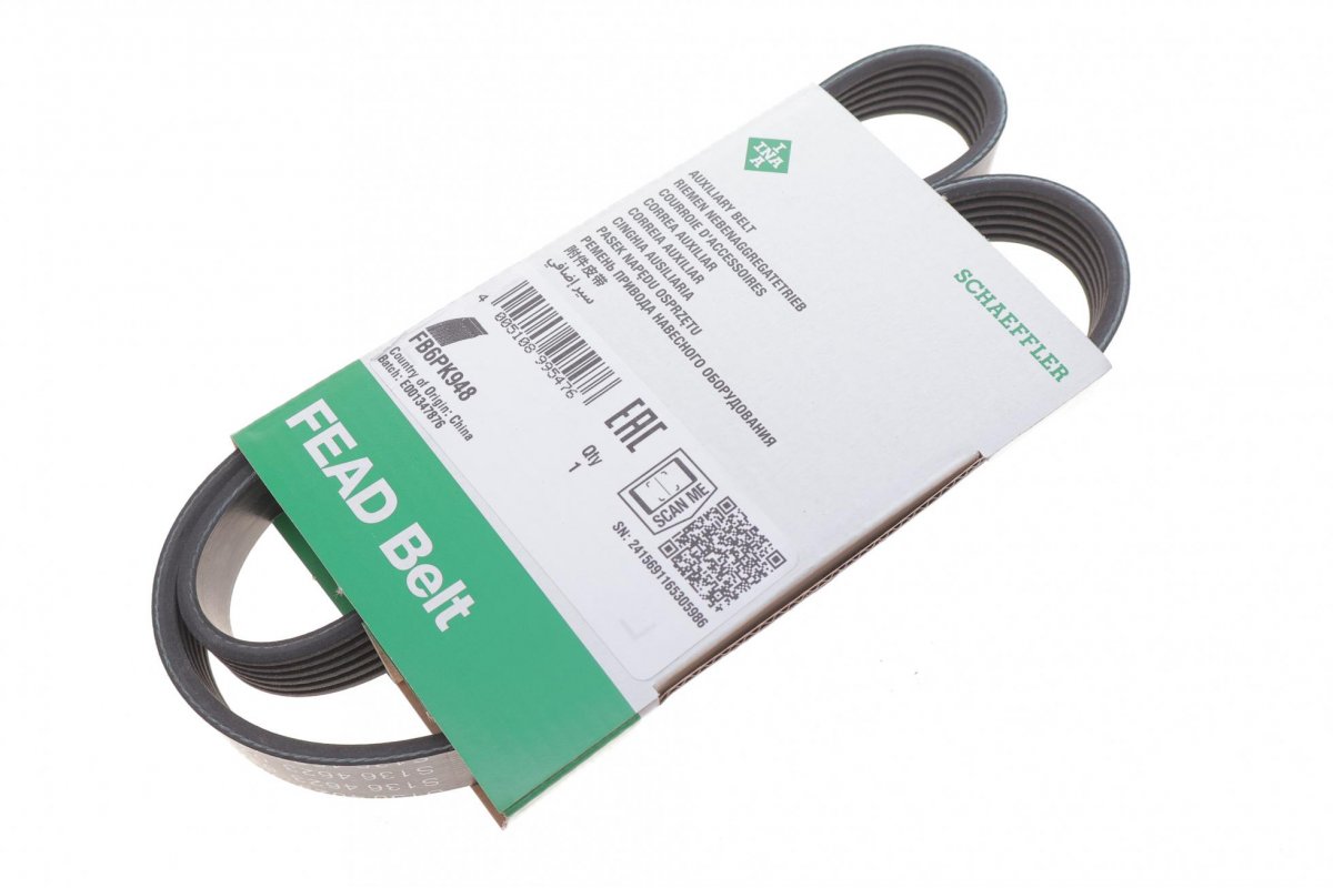 Ремінь генератора (948мм, без кондиціонера) Volkswagen Passat B6 / Фольксваген Пассат Б6 2.0TDI 2005-2010 FB6PK948 INA (Німеччина)