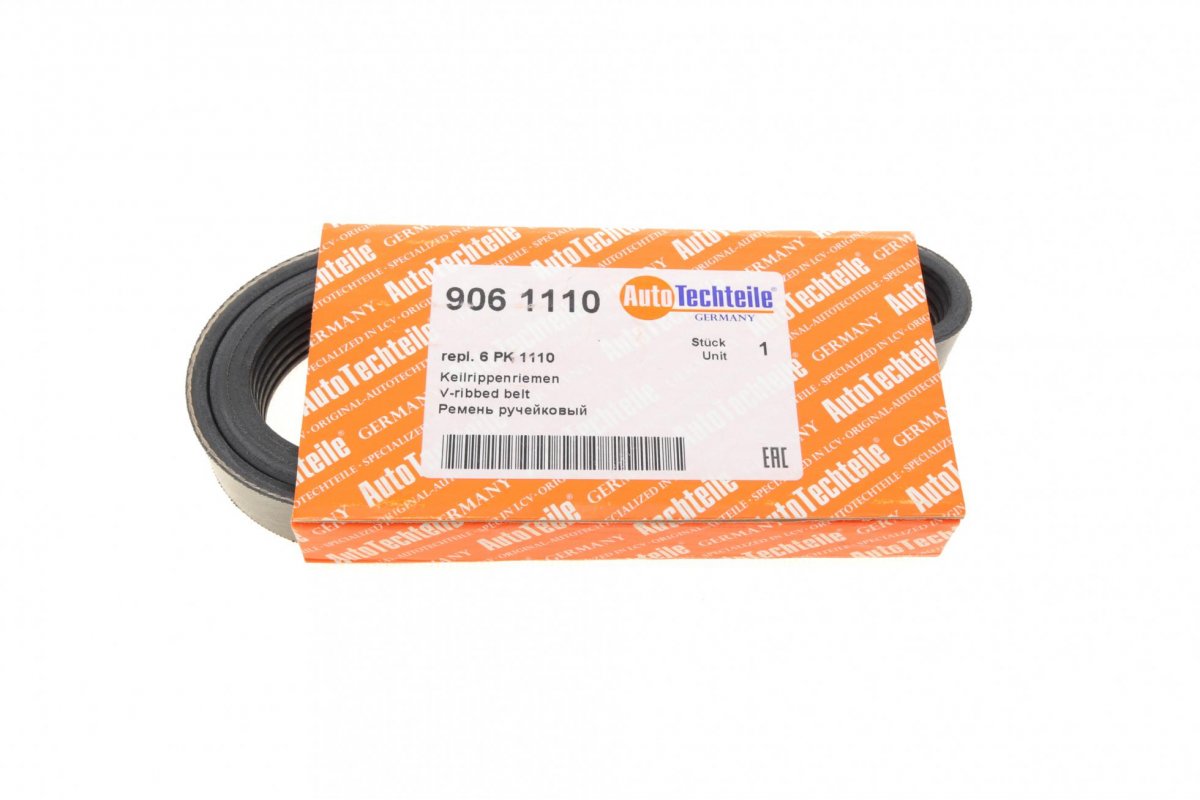 Ремінь генератора (1110мм, з кондиціонером) Volkswagen Passat B6 / Фольксваген Пассат Б6 2.0TFSI 2005-2010 9061110 AUTOTECHTEILE (Німеччина)