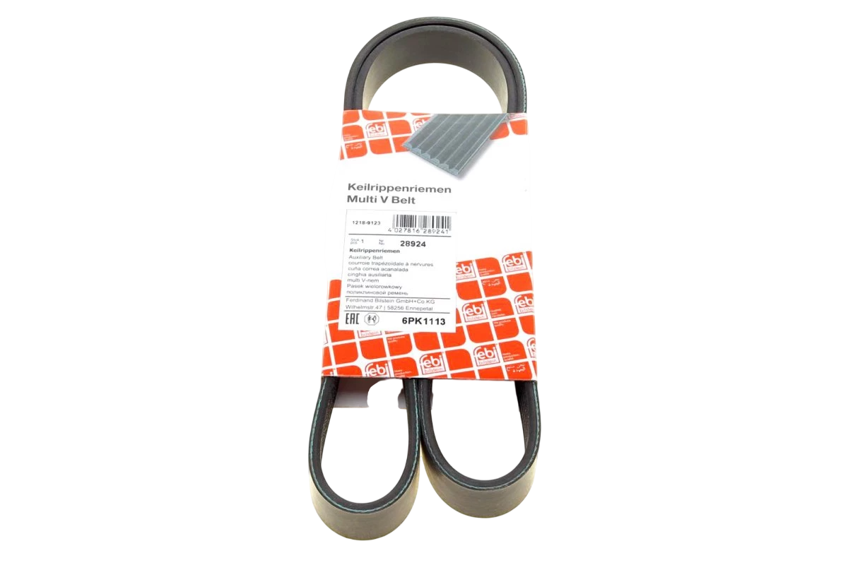 Ремінь генератора (1115мм, з кондиціонером) Volkswagen Passat B6 / Фольксваген Пассат Б6 2.0TFSI 2005-2010 28924 FEBI (Німеччина)