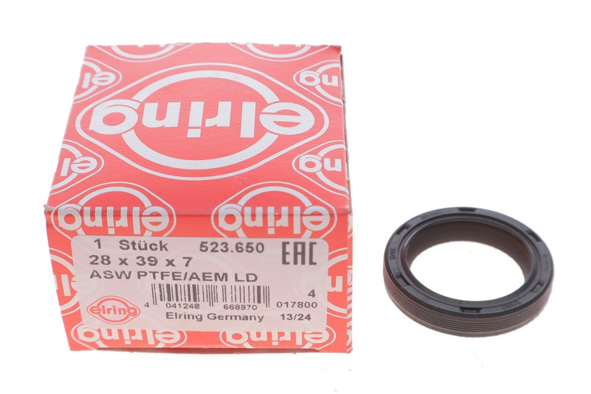 Сальник колінвалу передній (28X39X7) VW Touran II / Фольксваген Туран 2 2015- 523.650 ELRING (Німеччина)