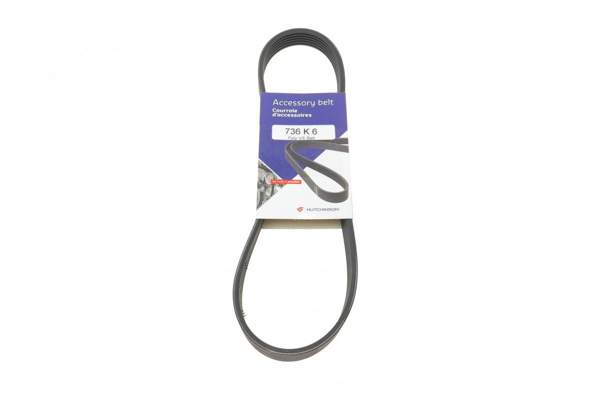 Ремень генератора Volkswagen Golf 5 / Фольксваген Гольф 5 1.4 (бензин) 2003-2009 736K6 HUTCHINSON (Франция)